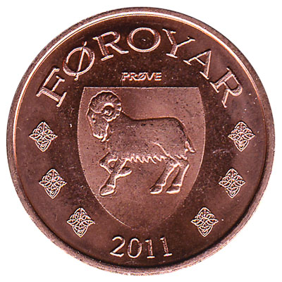 The copper-plated zinc coin of 50 Faroese Oyru is the equivalent of half a krona. The front side features a Shetland sheep dog and the back side has the image of a ram, part of the coat of arms of the Faroe Islands.