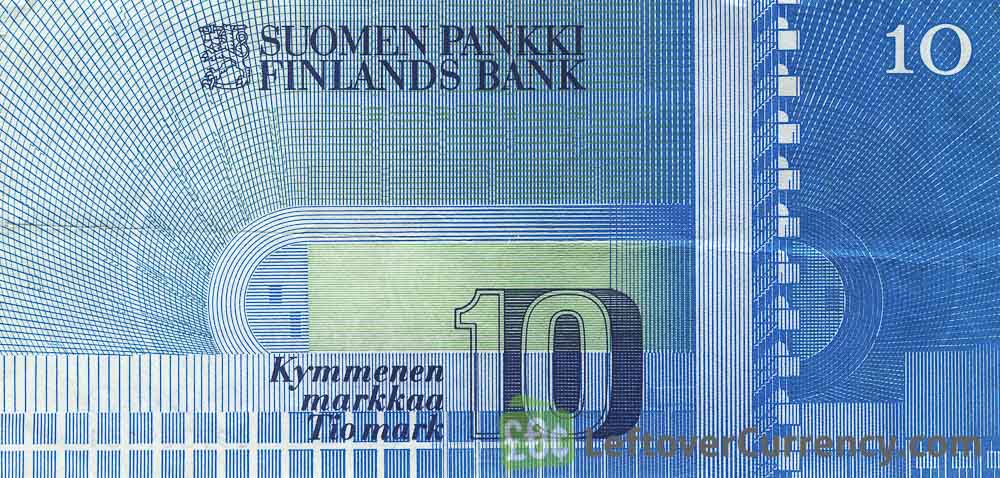 The note of 10 kymmenen markkaa shows the image of Paavo Nurmi, Finnish athlete. The words ‘Suomen Pankki’ are printed on the blue colored ten Finnish markkaa paper bill. On the back is an image of Helsinki Olympic Stadium.