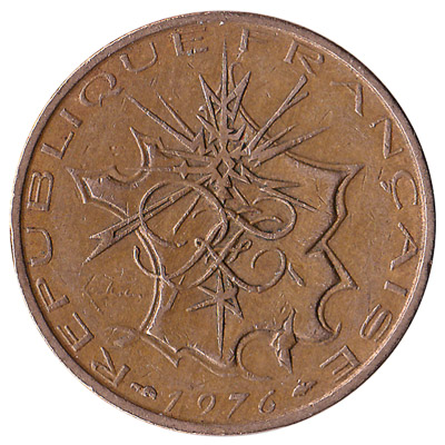 The Banque de France issued French Franc coins in 10 different denominations, including this France 10 Franc coin (nickel-brass). They are part of the French Franc coins series. The Banque de France started issuing these 10 French Franc coins in 1974. They were withdrawn from circulation in 2002.