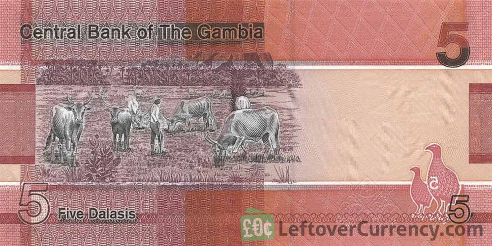 - Text: Central Bank of The Gambia, Promise to pay on demand the sum of Five Dalasis, 5