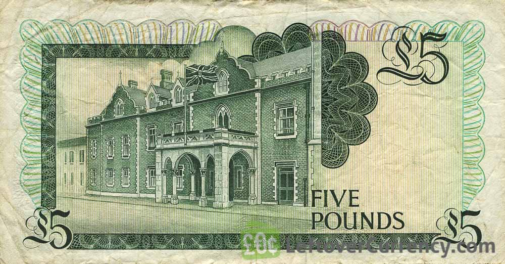 The Government of Gibraltar issued Gibraltar Pound banknotes in 8 different denominations, including this 5 Gibraltar Pounds banknote (Covenant of Gibraltar). They are part of the withdrawn Gibraltar Pound banknotes series. The Government of Gibraltar started issuing these 5 Gibraltar Pound banknotes in 1971. They were withdrawn from circulation in 2011.