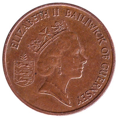 - Text: Bailiwick of Guernsey, Elizabeth II, One Pence
