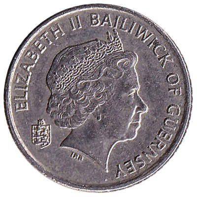 The States of Guernsey issued Guernsey Pound coins in 9 different denominations, including this 5 Pence coin Guernsey. They are part of the Guernsey Pound coins series. The States of Guernsey started issuing these 0.05 Guernsey Pound coins in 1990. They are currently still in circulation.