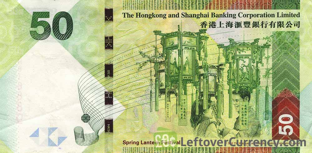 - Text: 50, Fifty Hong Kong Dollars, HSBC, The Hongkong and Shanghai Banking Corporation Limited
