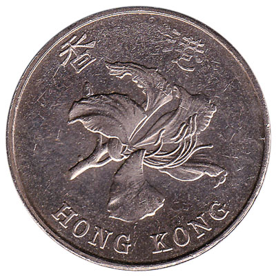 The five Hong Kong dollars coin has a weight of 13.5 grams and a diameter of 27mm. The $5 HKD piece has a Bauhinia flower on the back side.