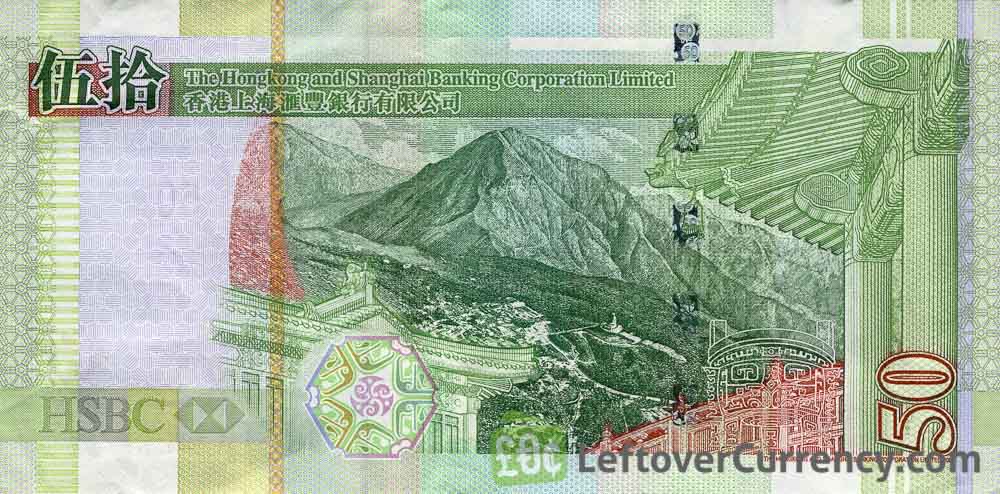 - Text: 50, Fifty Hong Kong Dollars, HSBC, The Hongkong and Shanghai Banking Corporation Limited