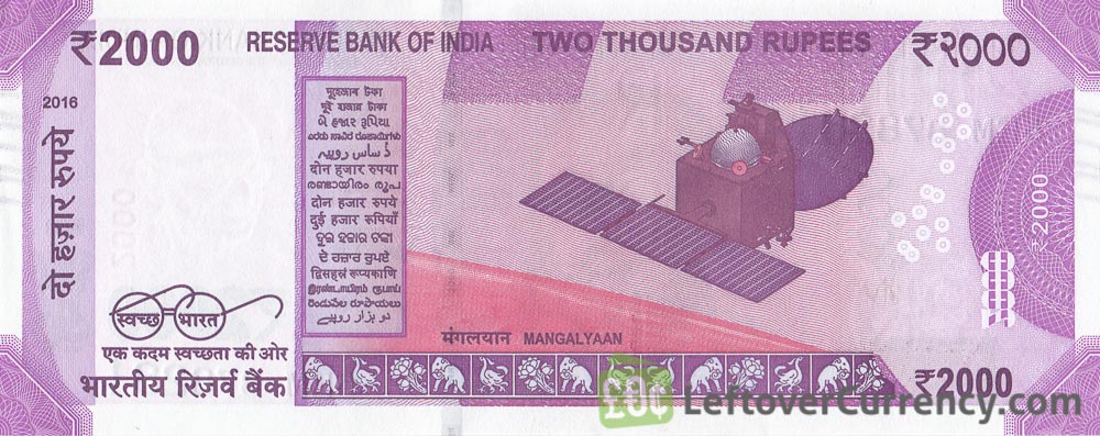 Repeat these steps for any other notes and coins you want to exchange. Complete checkout and get paid within 5 days of receiving your currencies. To exchange your 2000 Indian Rupees banknote (Gandhi Mangalyaan) for cash: add it to your wallet now!