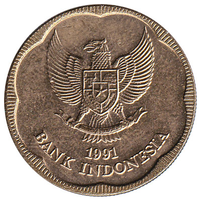 The Bank Indonesia issued Indonesian Rupiah coins in 7 different denominations, including this Indonesia 500 Rupiah coin (1991 to 1996). They are part of the Indonesian Rupiah coins series. The Bank Indonesia started issuing these 500 Indonesian Rupiah coins in 1991. They are currently still in circulation.