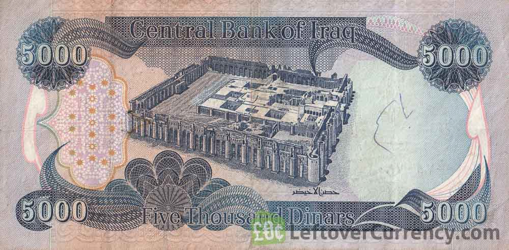 Repeat these steps for any other notes and coins you want to exchange. Complete checkout and get paid within 5 days of receiving your currencies. To exchange your 5000 Iraqi dinars banknote (Al-Ukhaidir Fortress) for cash: add it to your wallet now!