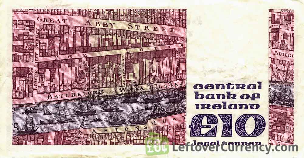 The Central Bank of Ireland issued Irish Pound banknotes in 8 different denominations, including this 10 Irish Pounds banknote (Jonathan Swift). They are part of the Irish Pound banknotes series. The Central Bank of Ireland started issuing these 10 Irish Pound banknotes in 1976. They were withdrawn from circulation in 1993.