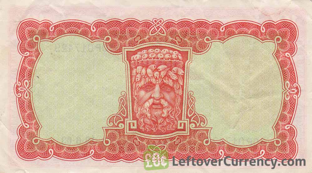 The Central Bank of Ireland issued Irish Pound banknotes in 8 different denominations, including this 50 Pence banknote Ireland (Lady Hazel Lavery). They are part of the Irish Pound banknotes series. The Central Bank of Ireland started issuing these 0.5 Irish Pound banknotes in 1928. They were withdrawn from circulation in 1968.