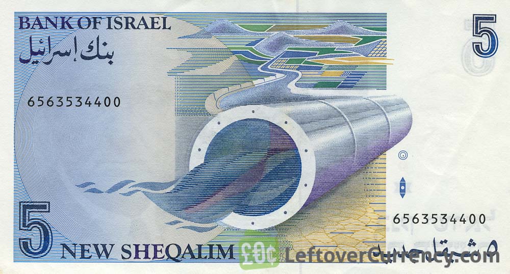 - Text: 5, Bank of Israel, Five New Sheqalim
