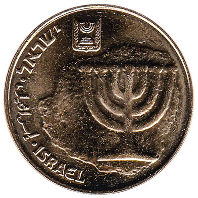 The 10 Agora coin from Israel weighs 4 grams and measures 22mm across. The aluminium-bronze 10 agora piece features a seven-branched candelabrum. Israel’s 10 Agora piece is the country’s lowest value coin in general use.