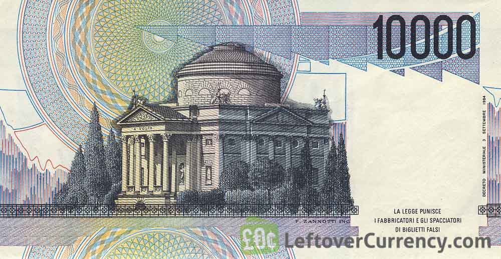 The Banca d'Italia issued Italian Lira banknotes in 10 different denominations, including this 10000 Italian Lire banknote (Alessandro Volta). They are part of the Italian Lira banknotes series. The Banca d'Italia started issuing these 10000 Italian Lira banknotes in 1984. They were withdrawn from circulation in 2002.