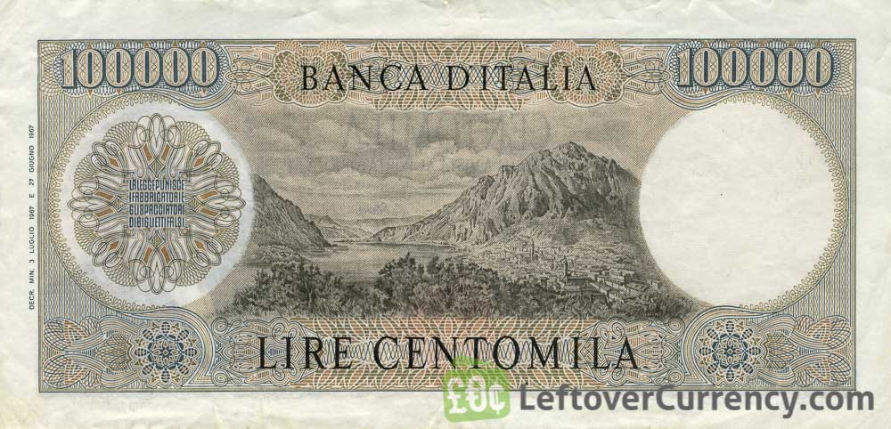 Repeat these steps for any other notes and coins you want to exchange. Complete checkout and get paid within 5 days of receiving your currencies. To exchange your 100000 Italian Lire banknote (Manzoni) for cash: add it to your wallet now!