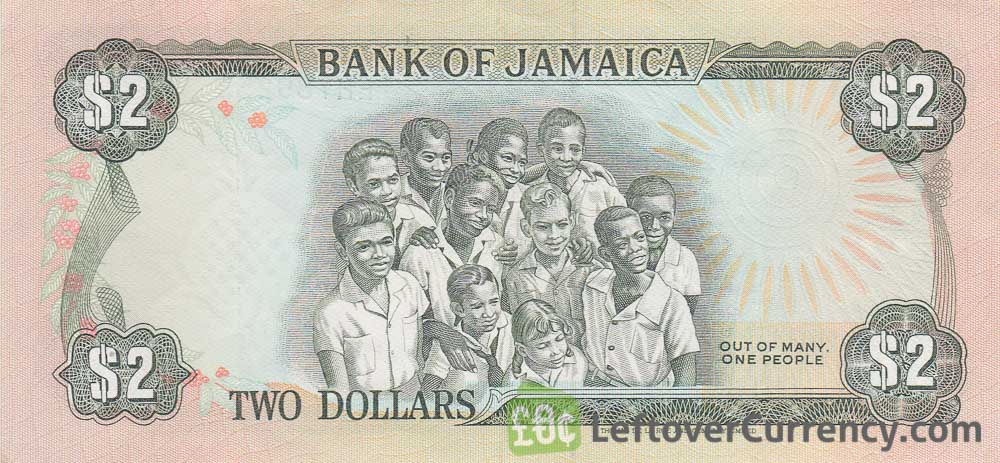 On the obverse side of the $2 Jamaican Dollars bill is a portrait of national hero Paul Bogle, leader of the Morant Bay protesters. The reverse side of the two dollars banknote features a group of school children in uniform alongside the national motto of Jamaica: ‘Out of many, one people’.