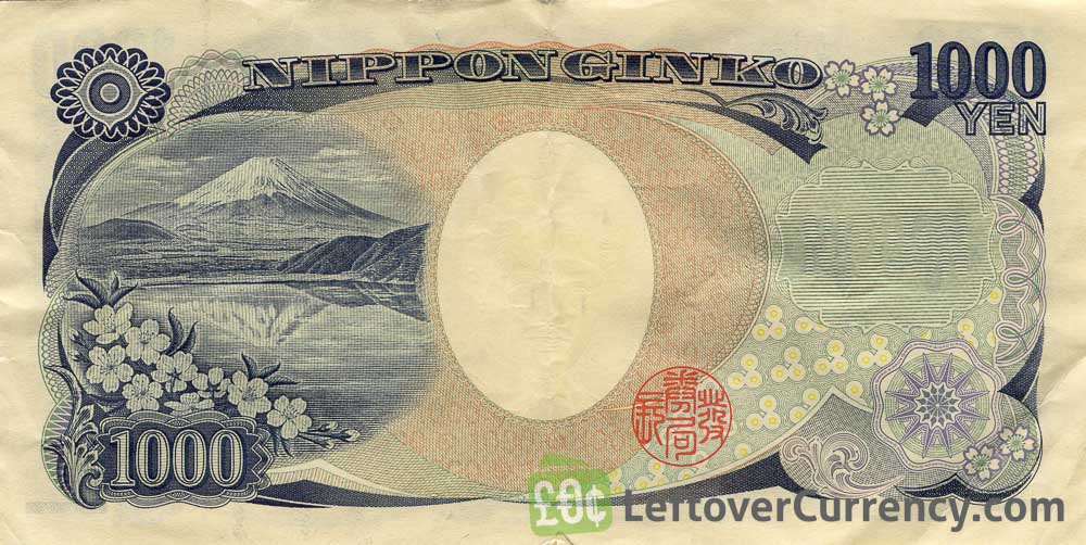 The Bank of Japan issued Japanese Yen banknotes in 5 different denominations, including this 1000 Japanese Yen banknote (2004 series Hideo Noguchi). They are part of the current Japanese Yen banknotes series. The Bank of Japan started issuing these 1000 Japanese Yen banknotes in 2004. They are currently still in circulation.