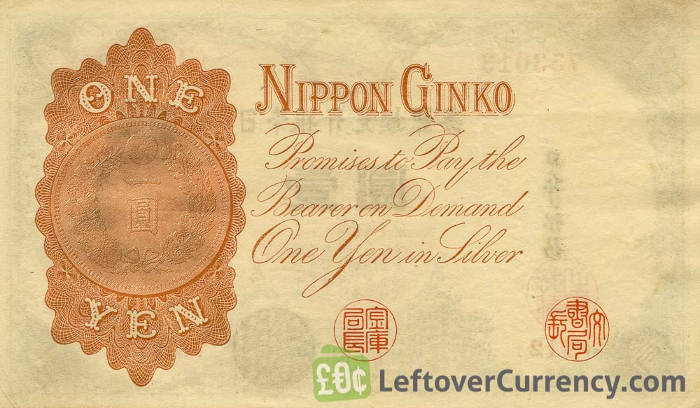 The Bank of Japan issued Japanese Yen banknotes in 11 different denominations, including this 1 Japanese Yen banknote (Takeuchi Sukuni). They are part of the withdrawn Japanese Yen banknotes series. The Bank of Japan started issuing these 1 Japanese Yen banknotes in 1889. They were withdrawn from circulation in 1943.