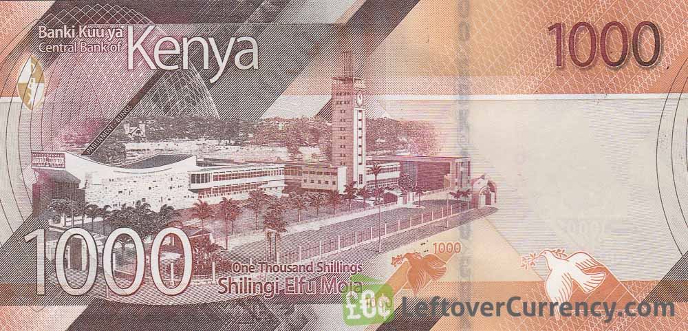 The Central Bank of Kenya issued Kenyan Shilling banknotes in 5 different denominations, including this 1000 Kenyan Shillings banknote (Parliament Building 2019). They are part of the Current Kenyan Shilling banknotes series. The Central Bank of Kenya started issuing these 1000 Kenyan Shilling banknotes in 2019. They are currently still in circulation.