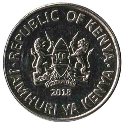 The Central Bank of Kenya issued Kenyan Shilling coins in 5 different denominations, including this 1 Kenyan Shillings coin (giraffe). They are part of the Kenyan Shilling coins series. The Central Bank of Kenya started issuing these 1 Kenyan Shilling coins in 2018. They are currently still in circulation.