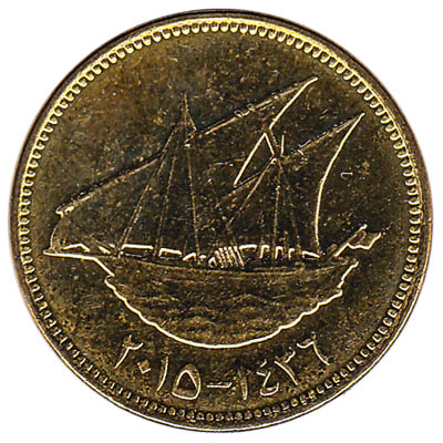 The Central Bank of Kuwait issued Kuwaiti Dinar coins in 6 different denominations, including this 10 Fils coin Kuwait. They are part of the Kuwaiti Dinar Fils coins series. The Central Bank of Kuwait started issuing these 0.01 Kuwaiti Dinar coins in 1960. They are currently still in circulation.