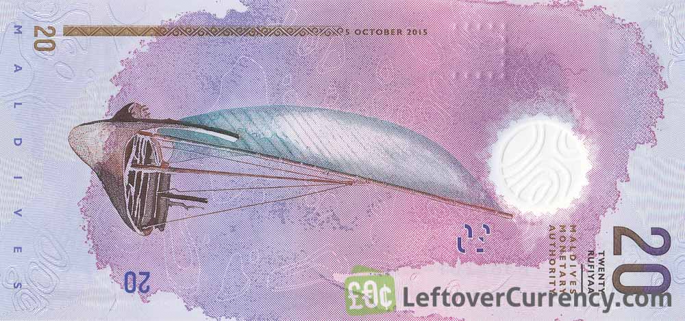 The Maldives Monetary Authority issued Maldivian Rufiyaa banknotes in 9 different denominations, including this 20 Maldivian Rufiyaa banknote. They are part of the current Maldivian Rufiyaa banknotes series. The Maldives Monetary Authority started issuing these 20 Maldivian Rufiyaa banknotes in 2015. They are currently still in circulation.