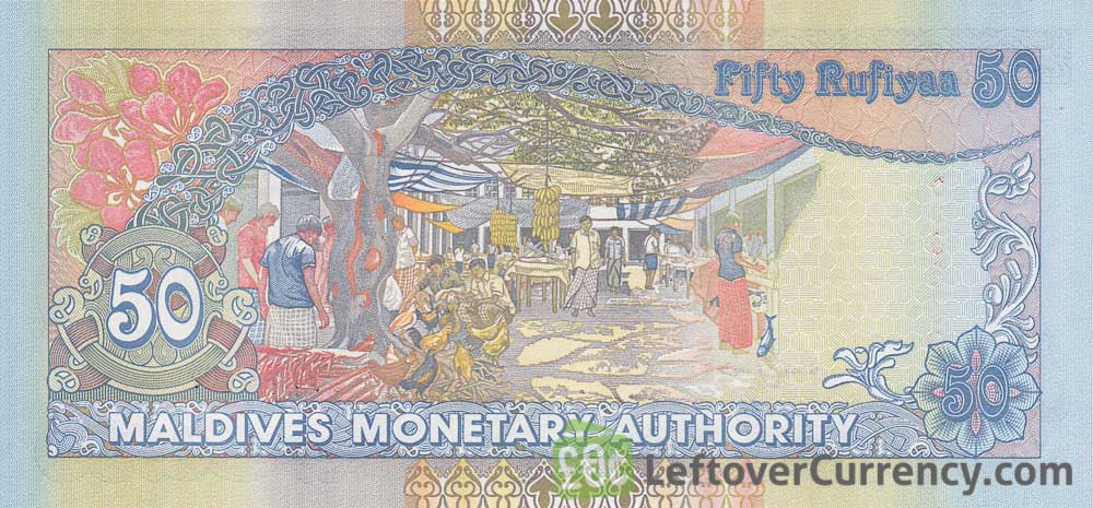 - Text: 50, Fifty Rufiyaa 50, Maldives Monetary Authority