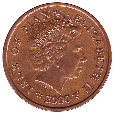 The Isle of Man two penny coin is made of copper plated steel. Like all Manx coins, it features Queen Elizabeth II on one side, whilst the depiction on the reverse varies depending on the year issue.