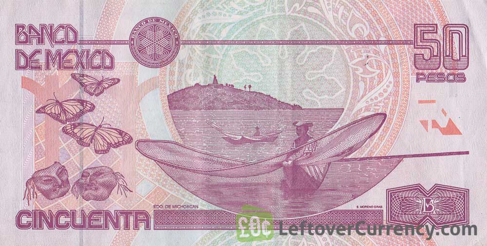 The Banco de Mexico issued Mexican Peso banknotes in 8 different denominations, including this 50 Mexican Pesos banknote (Series D). They are part of the withdrawn Mexican Peso banknotes series. The Banco de Mexico started issuing these 50 Mexican Peso banknotes in 1994. They were withdrawn from circulation in 2002.