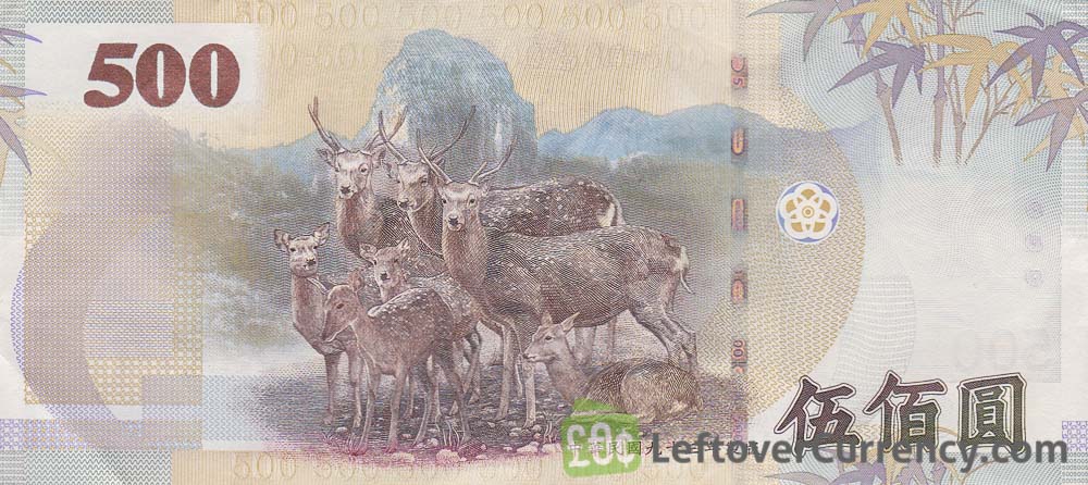 The Central Bank of the Republic of China issued new Taiwan dollar banknotes in 6 different denominations, including this 500 New Taiwan Dollar banknote. They are part of the current New Taiwan Dollar banknotes series. The Central Bank of the Republic of China started issuing these 500 new Taiwan dollar banknotes in 2001. They are currently still in circulation.