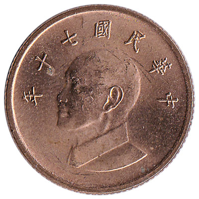 The Central Mint of the Republic of China issued new Taiwan dollar coins in 7 different denominations, including this 1 New Taiwan Dollar coin. They are part of the New Taiwan Dollar coins series. The Central Mint of the Republic of China started issuing these 1 new Taiwan dollar coins in 1981. They are currently still in circulation.