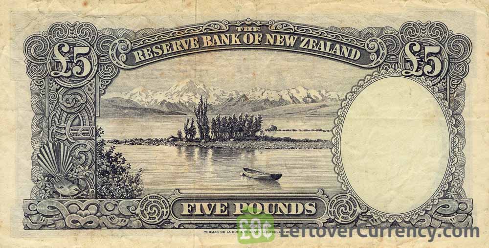 The Reserve Bank of New Zealand issued New Zealand Pound banknotes in 6 different denominations, including this 5 New Zealand Pounds banknote (James Cook). They are part of the New Zealand Pound banknotes series. The Reserve Bank of New Zealand started issuing these 5 New Zealand Pound banknotes in 1940. They were withdrawn from circulation in 1967.