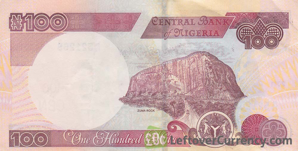 - Text: 100, Central Bank of Nigeria, Chief Obafemi Awolowo 1909-1987, One Hundred Naira, Zuma Rock, ₦100