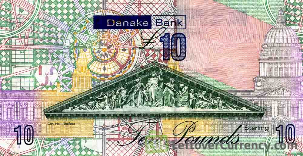 The Danske Bank issued Northern Irish Pound banknotes in 6 different denominations, including this Northern Bank 10 Pounds banknote (series 2005). They are part of the current Danske Bank banknotes series. The Danske Bank started issuing these 10 Northern Irish Pound banknotes in 2005. They are currently still in circulation.