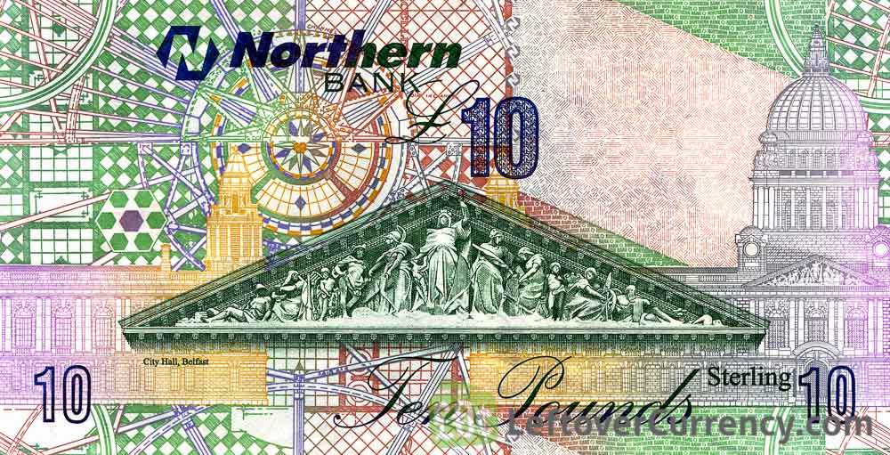 The Northern Bank issued Northern Irish Pound banknotes in 7 different denominations, including this Northern Bank 10 Pounds banknote (series 2004). They are part of the withdrawn Northern Bank banknotes series. The Northern Bank started issuing these 10 Northern Irish Pound banknotes in 2004. They were withdrawn from circulation in 2012.