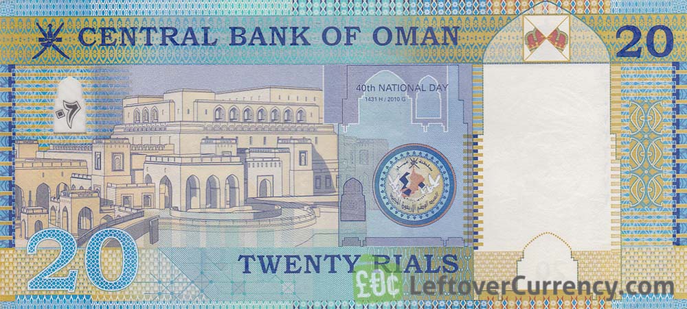 - Text: 20, 20 rials, 40th National Day 1431 H / 2010 G, 7., Central Bank of Oman, Twenty Rials