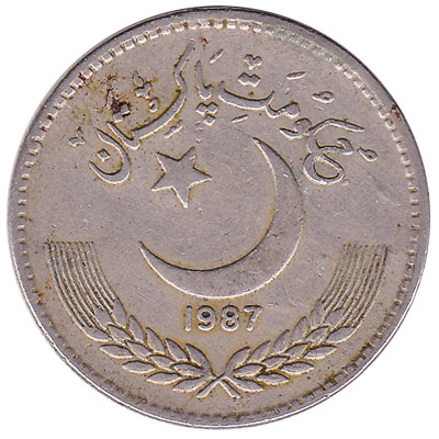 The State Bank of Pakistan issued Pakistani Rupee coins in 5 different denominations, including this 1 Pakistani Rupee coin (cupronickel). They are part of the Pakistani Rupee coins series. The State Bank of Pakistan started issuing these 1 Pakistani Rupee coins in 1981. They were withdrawn from circulation in 1998.