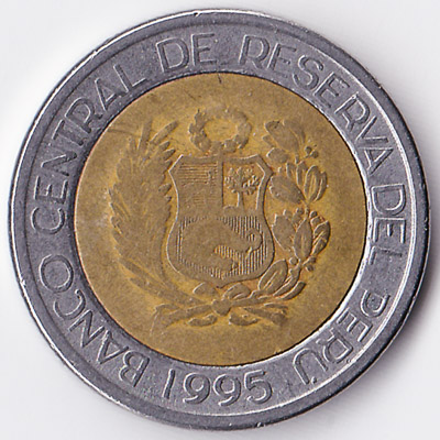 The Banco Central de Reserva del Perú issued Peruvian Sol coins in 8 different denominations, including this 2 Peruvian Nuevos Soles coin. They are part of the Peruvian Sol coins series. The Banco Central de Reserva del Perú started issuing these 2 Peruvian Sol coins in 1994. They are currently still in circulation.