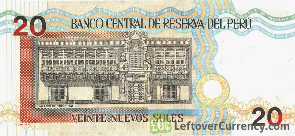 - Text: 20, BANCO CENTRAL DE RESERVA DEL PERU, Palacio de Torre Tagle, VEINTE NUEVOS SOLES