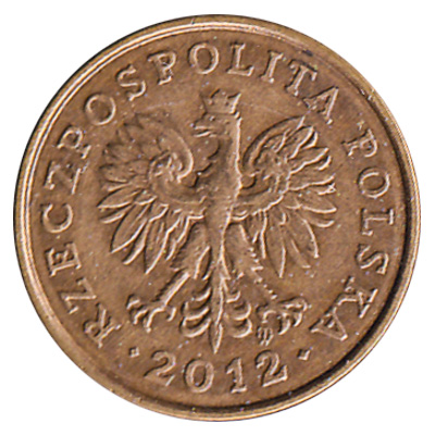 The Polish coin of 2 grosze has a diameter of 17.5mm and weighs 2.13g. Text on the 2gr brass plated steel coin reads ‘Rzeczpospolita Polska’, meaning ‘Republic of Poland’.