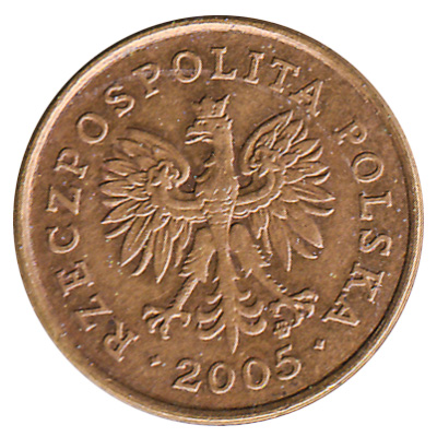 The Mint of Poland issued Polish Zloty coins in 9 different denominations, including this 5 Groschen coin Poland. They are part of the Polish Zloty coins series. The Mint of Poland started issuing these 0.05 Polish Zloty coins in 1990. They are currently still in circulation.