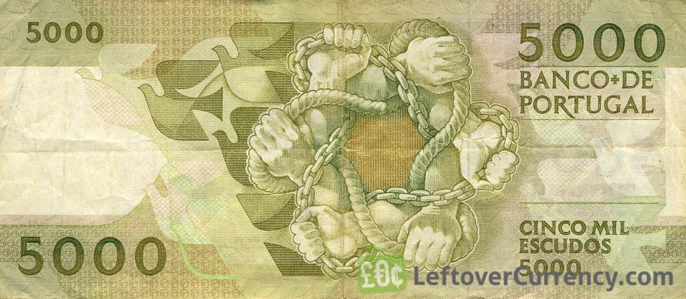 - Text: 5 Mil Escudos, 5000, Banco de Portugal, Cinco Mil Escudos