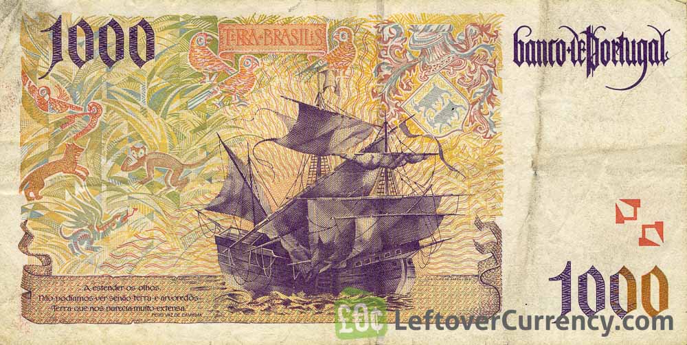 Repeat these steps for any other notes and coins you want to exchange. Complete checkout and get paid within 5 days of receiving your currencies. To exchange your 1000 Portuguese Escudos banknote (Pedro Alvares Cabral) for cash: add it to your wallet now!