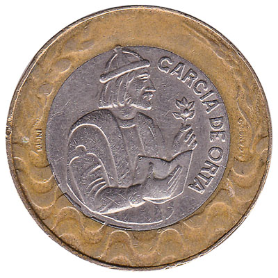 The Imprensa Nacional-Casa da Moeda issued Portuguese Escudo coins in 13 different denominations, including this 200 Portuguese Escudos coin (Garcia de Orta). They are part of the Portuguese Escudo coins series. The Imprensa Nacional-Casa da Moeda started issuing these 200 Portuguese Escudo coins in 1991. They were withdrawn from circulation in 2001.