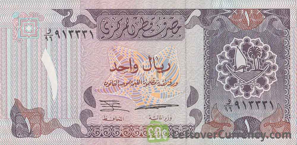 The Qatar Central Bank issued Qatari Riyal banknotes in 7 different denominations, including this 1 Qatari Riyal banknote (Third Issue). They are part of the demonetized Qatari Riyal banknotes series. The Qatar Central Bank started issuing these 1 Qatari Riyal banknotes in 1996. They were withdrawn from circulation in 2003.