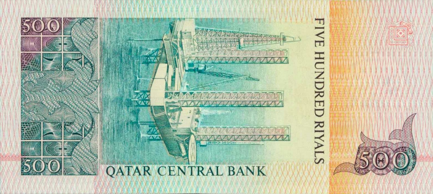 - Text: 500, Five Hundred Riyals, Qatar Central Bank