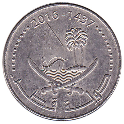 The State of Qatar issued Qatari Riyal coins in 3 different denominations, including this 25 dirhams coin Qatar (Tamim). They are part of the Qatari Riyal dirham coins series. The State of Qatar started issuing these 0.25 Qatari Riyal coins in 2016. They are currently still in circulation.