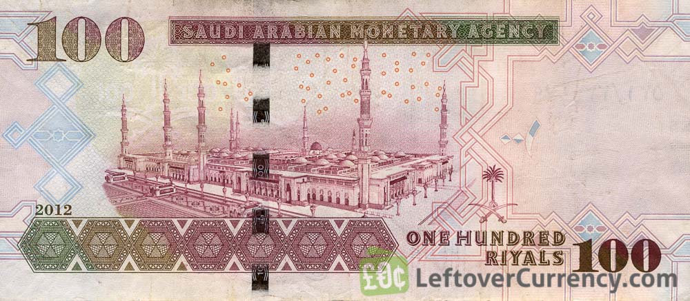 The Saudi Arabian Monetary Agency issued Saudi Riyal banknotes in 7 different denominations, including this 100 Saudi Riyals banknote (2007 series). They are part of the current Saudi-Arabian Riyal banknotes series. The Saudi Arabian Monetary Agency started issuing these 100 Saudi Riyal banknotes in 2007. They are currently still in circulation.