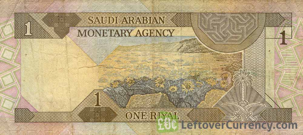 The Saudi Arabian Monetary Agency issued Saudi Riyal banknotes in 9 different denominations, including this 1 Saudi Riyal banknote (1984 series). They are part of the withdrawn Saudi-Arabian Riyal banknotes series. The Saudi Arabian Monetary Agency started issuing these 1 Saudi Riyal banknotes in 1984. They were withdrawn from circulation in 2004.
