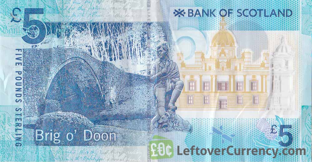 - Text: 5, Bank of Scotland, Brig o' Doon, Five Pounds Sterling